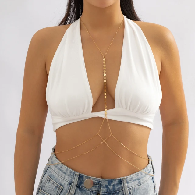 Cette chaîne est ornée de sequins scintillants, offrant une touche de glamour et de brillance. Idéal pour attirer tous les regards, ce modèle est parfait pour celles qui aiment se démarquer avec des détails lumineux et éclatants.